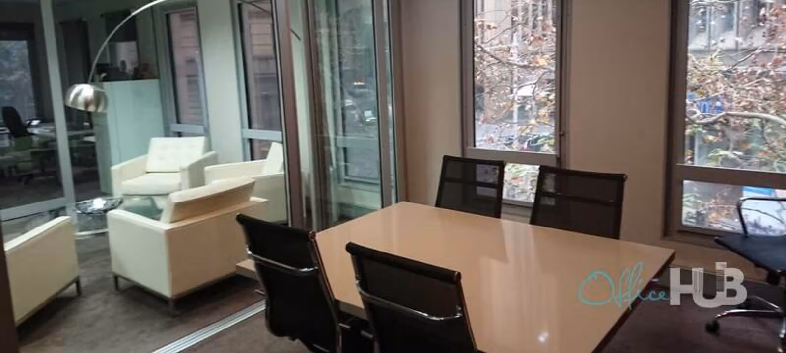 This newly refurbished suite boasts an understated elegance that all types of professionals will appreciate. The office space is an architectural work of art featuring high ceilings, modern decor, and premium quality office furniture. The office space is neatly divided into coworking spaces built with partitions for privacy, alongside sizeable meetings rooms encased behind glass walls. All these areas receive ample sunlight, thanks to the large windows that also provide attractive, wraparound views of the city. All these features will help to bolster your productivity and enhance worker wellbeing simultaneously. Differently sized, fully-equipped meeting rooms are free to use, providing you with a quiet space to meet clients, conduct interviews or training sessions, strategise with team members, or discuss essential tasks and projects with staff. The working stations come fitted with desks and chairs, so all that's expected of you is to arrive with your laptop and begin working straight away!
