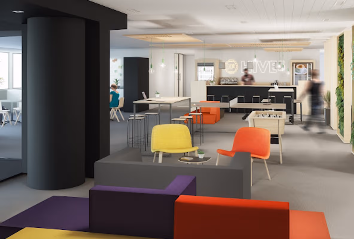 This first hive for entrepreneurs born in June 2016 welcomes you in its 640m²: a mix of coworking spaces, meeting rooms and private offices. Modern and warm offices, a bright setting and an atmosphere where it is good to work... Located a stone's throw from the Mérode Metro station and two minutes from the European Institutions, Hive5 Saint-Michel stands out for its strategic location, its meeting room able to accommodate up to 25 people and its central living space with the possibility of organizing seminars. We have designed “ready to move in” offices, shared or private. Ergonomic furniture, acoustic telephone booths, natural light: everything is designed for your comfort and well-being.