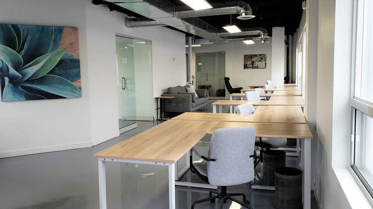 Are you and your team of 5 in search of a coworking space? Look no further than the Eastern Broadview Building! With five desks available, starting at just CA$518 per week (or CA$2250 per month), it's an affordable and inviting option for businesses. The building offers many amenities to make it the ideal office space, including 24/7 access, air conditioning, telephone answering services, storage facilities, parking (paid), business lounge, disabled access, building security, concierge in foyer and lift/elevator. What's more, its convenient location--a 6 minute walk from Queen St East at Broadview Ave bus stop or 38 minutes away from Broadview train station--makes commuting easy. Experience this incredible shared workspace opportunity firsthand by scheduling a tour today. With perfect internal lighting and so much more to offer you're sure to find the perfect fit!