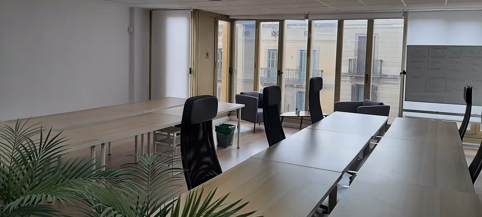 Located in the heart of Barcelona, on Roger de Lluria street, a few meters from Gran Via and between Plaça Catalunya and Plaça Tetuan, this VERY bright private office in a shared office offers an ideal work environment for a company of 10-14 people.The total floor area is 350m². The space has :- 4 meeting rooms : 2 call rooms, a medium-sized room for 2-3 people and a large meeting room- 2 break areas : one with a spacious couch and board games, and another one with a couch, armchairs and a TV with a Nintendo Switch - 1 fully equipped kitchen : oven, microwave, dishwasher, cutlery, etc.- 3 bathrooms : 1 for men, 1 for women, and 1 mixedAll common areas are shared with one other company, Keyweo, a Marketing agency. We are approximately 20-25 people. Included in the price: common expenses such as cleaning, internet, electricity, etc.Not included in the price: community fees and proportional IBI.