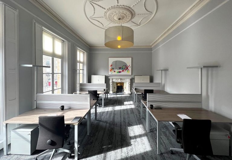 Set within the walls of a refurbished Georgian building, our boutique private offices are well apportioned and beautifully fitted out. We pride ourselves in offering a personable service in a professional setting, where our clients matter as much to us and their clients matter to them. We offer private office suites in an elegant setting with all the amenities and services of a modern office.Facilities and Services- Spacious & bright fully furnished office suite with large desks, ergonomic chairs and file storage- Full Reception services including phone answering, meet & greet and mail handling- Municipal rates, cleaning service charges, waste disposal & building insurance- Electricity, water, heating & air‐conditioning- 24/7 access to your office suite and the building- Building security – CCTV, access control system, 24 hour monitoring- Use of our dedicated, uncontended Fibre broadband direct into HH for Hamilton House clients use only- Telephone handset with internal extension dialling & DDI per desk (call charges not included)- Access to meeting rooms and state‐of‐the‐art technology- Complimentary tea & coffee and fruit, and full use of kitchens and lounges- 5 star personable service from a skilled management team
