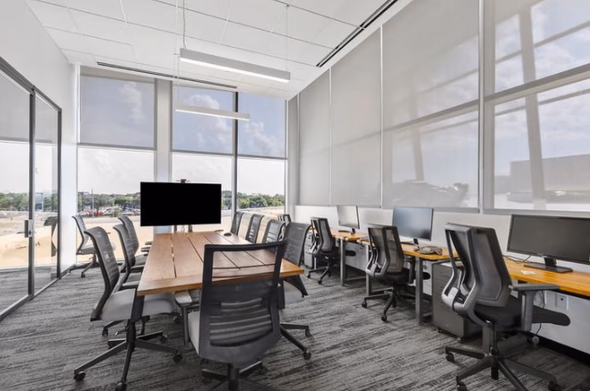 Venture X Dallas – Braniff Centre provides an inspiring and flexible coworking office with a selection of semi-private dedicated and shared desks, fully furnished private offices, and move-in-ready space for teams with the creative Loft and the light-filled, glass-walled Penthouse.Access to collaboration areas, tech-enhanced meeting rooms, and a podcast studio is provided to help your business grow. Attention to behind-the-scenes details is supported throughout the space with acoustically engineered glass walls, active sound management, dual ISP enterprise-grade high-speed fiber internet, and fob-less access control. With its collaborative atmosphere and convenient location at Lovers Lane and Lemmon Avenue, members love working at Venture X Dallas – Braniff Centre.
