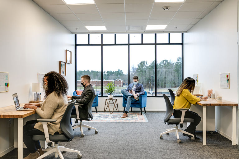 Gather Midlothian is a part of the up and coming Winterfield Crossing development in Chesterfield County. With boasting shops, fitness studios, local restaurants, a brewery and more, Winterfield Crossing gives Gather’s Midlothian office space an excellent and convenient neighborhood to thrive in Southside.Members of the Midlothian Gather location have access to coworking, dedicated desks, and private office space for rent. Gather also offer our Midlothian members local brewed coffee, private conference rooms, printing, high speed internet, a podcast room and community events.