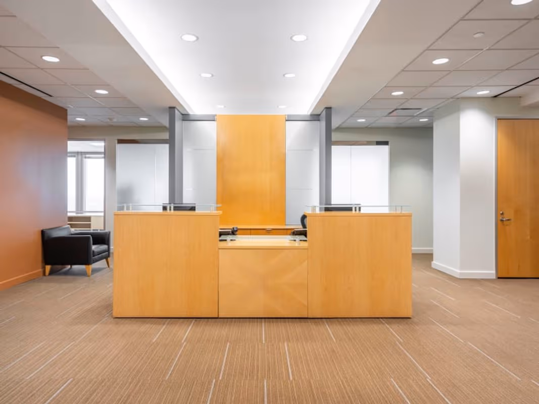 A distinctive glass curtain wall stepped back on the upper floor gives the Promenade II Center a unique skyline profile in the heart of Midtown Atlanta. The Class-A 38-story building is surrounded by well-manicured gardens. Inside there's a two-story lobby with architectural stone inlaid with accents of granite and marble and custom lighting fixtures. The center is on the 19th floor and affords terrific views of the city below. Of the nearly 1,700 businesses in its zip code, there are seven employing 1,000 or more people. Professional, scientific and technical services and healthcare are big employers here. Midtown is is also known as a hub for the music industry and creative arts, home to many theatres, ballet, orchestras and museums. As well as numerous luxury hotels and restaurants, the area's big attraction is the infamous Atlantic Station, which features department stores, restaurants and movie theatres. The building is directly across 15th street from the Arts Center MARTA Station.