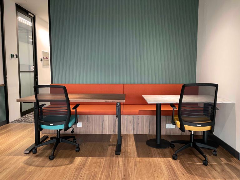This 6-desk private office at Menara 1 Sentrum in Jalan Tun Sambathan Brickfields is the perfect workspace for a team of six! Boasting a 10.0% discount, it's now available for rent at RM1205 weekly (RM5238 per month). Not only does it feature windows and natural lighting, but there is also air conditioning, balcony/outdoor access, meeting room, storage facilities, reception services, business lounge, disabled access, building security and lift/elevator included with parking in the building. Additionally, you'll find showers on site. It's conveniently located near SK Brickfields 2 bus stop just 3 minutes away from KL Sentral train station which is only 9 minutes away. Nearby you can enjoy delicious food options such as Proof Cafe & Sky Lounge and Amaran restaurant and bar. With four additional spaces ranging from one to fifty desks available for viewing through your Host, Menara 1 Sentrum is the ideal choice for businesses ready to move in!