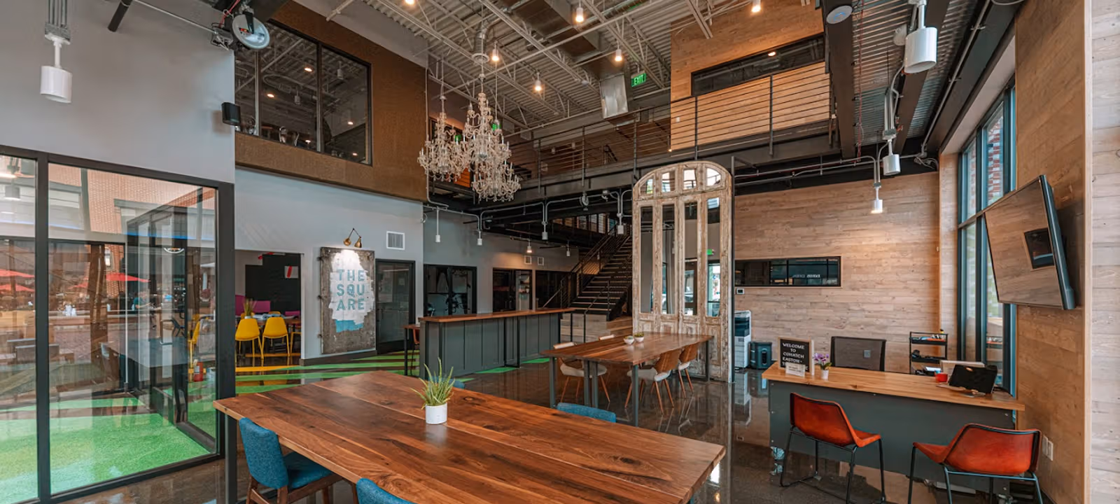The Square is in the heart of Easton Gateway. With over 20 private offices, multiple meeting rooms and a variety of coworking areas, The Square is ideal for entrepreneurs, small businesses, and large companies looking for off-site meeting space in and around Easton. Featuring a bouldering/climbing wall for that competitive diversion and other exclusive elements such as a Podcast room, The Square combines the commerce of Easton with the community of COhatch.
