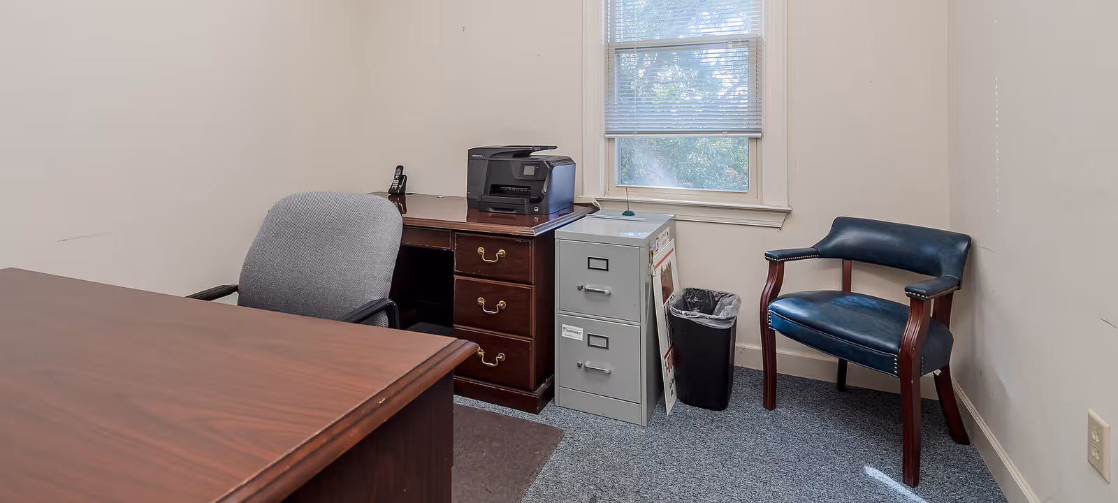 The Cornerstone offers a wide variety of executive office spaces including furnished and unfurnished rooms and both large and small office spaces located on both the first and second floor. Utilities including internet are included with the monthly rent. This building allows for secure 24/7 access for tenants. Amenities also include a break room, conference room, and a work room.
