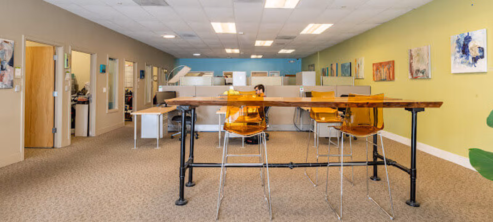 Satellite Workplaces Felton offers a comfortable and professional place to connect, to collaborate, and to be productive in the Santa Cruz Mountains. Our flexible workspace is designed to accommodate your unique work style and business needs. Whether you are looking for a place to drop in occasionally and use wifi, a local business address, virtual office, or a full-time private office, we’re here for you. Our on-site Community Manager will help you choose the perfect office plan for your needs, then, when your needs change, they’ll help you choose a new plan – we’re flexible like that. With blazing-fast fiber-optic WiFi, a variety of workspace choices, meeting rooms, event space, and private phone cubes, Satellite Felton offers everything you expect in a full-service coworking community with the relaxed atmosphere of your favorite cafe. Our hospitality bar features a variety of teas and great coffee; plus, there’s The White Raven Pour House is a few doors down!