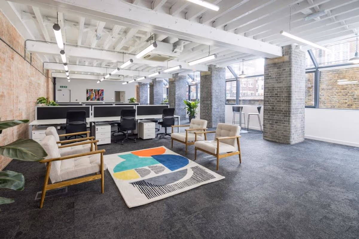 This Enterprise Office Space is £19150 per month, perfect for a team of 14 people and comes with flexible rental terms tailored to bigger teams wanting their own dedicated, fully managed workspace. This is a Full Private Floor inside a Managed Office Space and comes Fully Furnished with exclusive use of your own Reception, Balcony, Bathroom, Kitchen. Your team will also have dedicated use of 1 x Meeting rooms, which are exclusive for your use. The location is very central as the workspace is only a 8 min walk from Barbican and a 2 min walk from Pear Tree Street (Stop UR) bus stop. This Managed Space is located in Farringdon and if you book a tour Workplace Plus can show you available office spaces ranging in size from 1 to 0 desks. Did you know our team offer a free personalised service to help you shortlist, book and negotiate the best rate on your ideal workspace. From a 1 person hot desk to an enterprise team of 1000+ the Office Hub team can customise a flexible furnished office solution for your team.