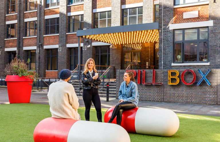 Reborn as a hub for creative start-ups looking to capitalise on our flexible studio leases, fantastic transport links and the energy of East London. Our stripped back studio spaces with exposed brickwork, huge windows and lab tile floors find their fans amongst those predominantly in the fashion, design, film and tech industries. The building houses a co-working space on the ground floor, situated next to the award-winning café and above the on-site gym. The building also houses high-spec meeting rooms, hosts regular networking and social events, has a roof terrace with panoramic views across the city and a landscaped front garden with picnic benches and AstroTurf.Pill Box's resilient connectivity has been independently verified to offer the best in digital infrastructure. Achieving a WiredScore Gold rating ensures Pill Box business' have access to business grade fibre broadband.